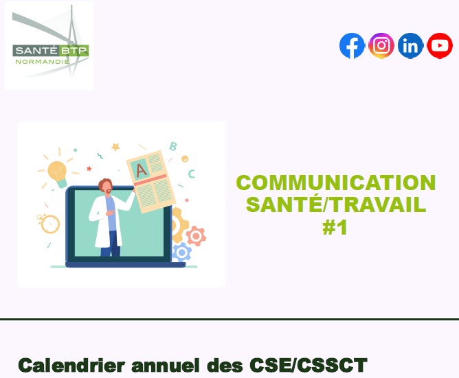 👉 Pensez bien à communiquer à votre médecin du travail, le calendrier annuel de vos réunions 2026 consacrées aux sujets relevant de la Santé, Sécurité et Conditions de Travail (CSSCT).